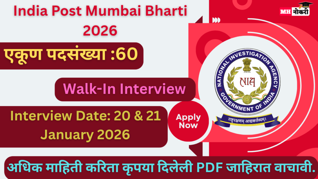 India Post Mumbai Bharti 2026 अंतर्गत 60 सरकारी पदांची भरती! 12वी पास, माजी सैनिक, Retired Govt कर्मचारी पात्र. Direct Walk-In …