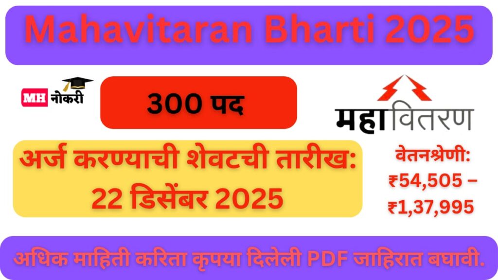 Mahavitaran Bharti 2025 Premium Update अंतर्गत Maharashtra State Electricity Distribution Company Limited ने 300 High-Pay Technical & Managerial Posts जाहीर …
