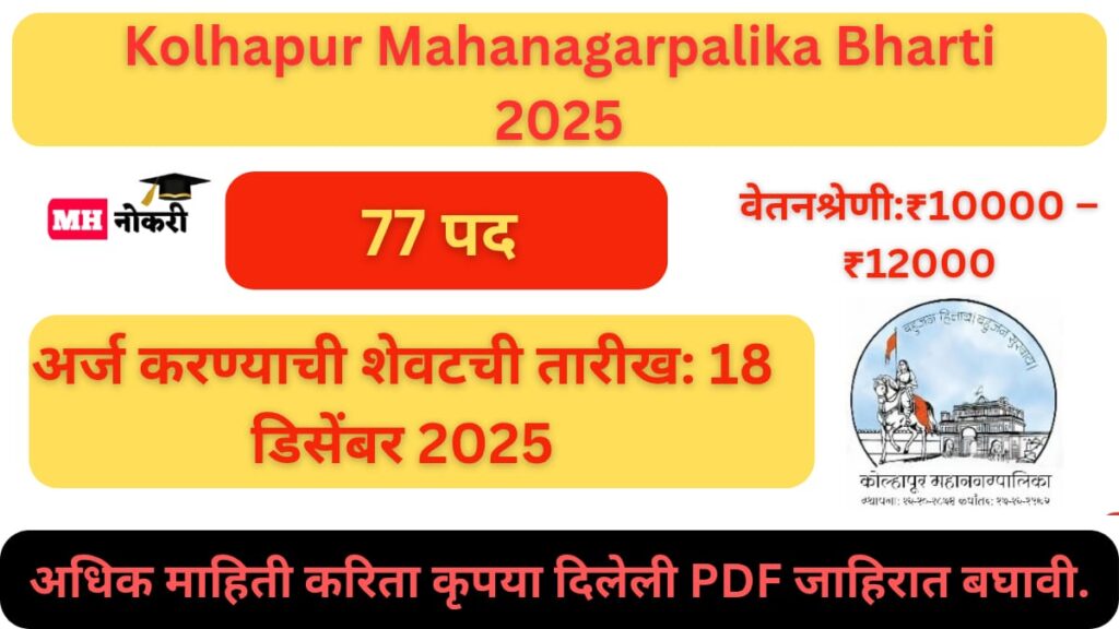 Kolhapur Mahanagarpalika Bharti 2025 Premium Update अंतर्गत कोल्हापूर महानगरपालिका येथे 77 Apprentice पदांसाठी भरती जाहीर झाली आहे. ही भरती Tulip …