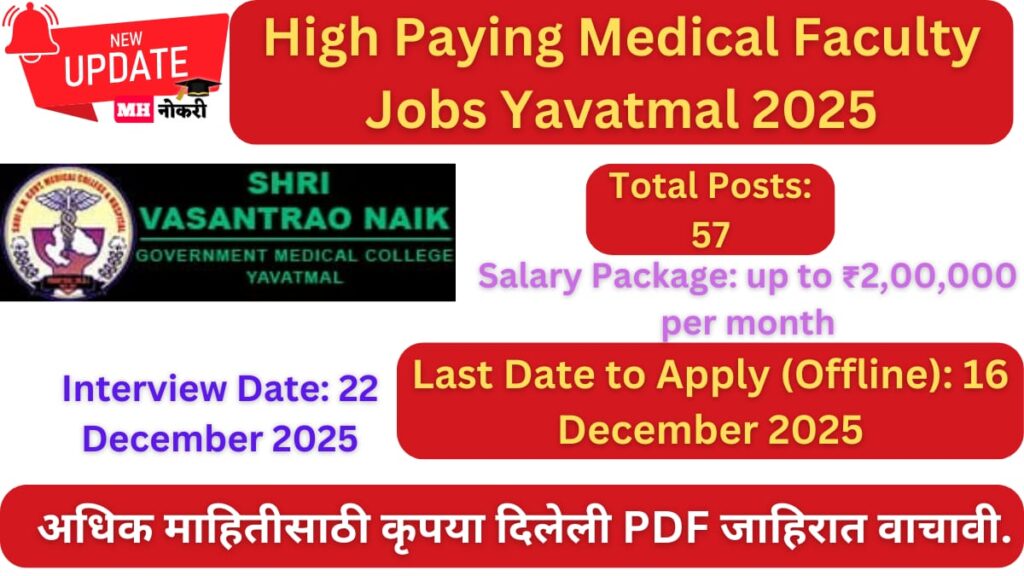High Paying Medical Faculty Jobs Yavatmal 2025 : VNGMC Yavatmal Bharti ची Premium Update! Shri Vasantrao Naik Government Medical College …