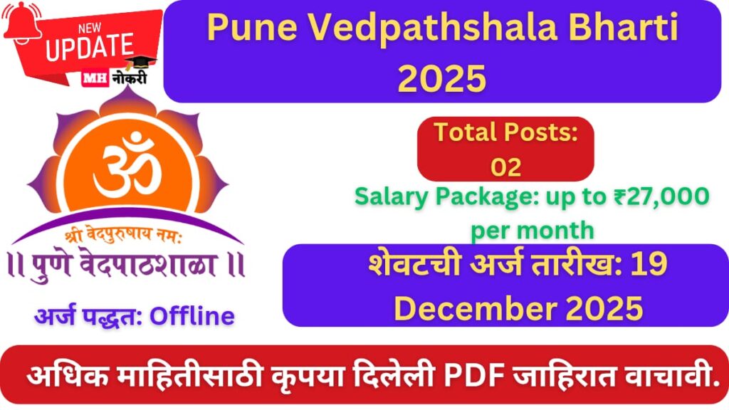 Pune Vedpathshala Bharti 2025 : High Value Teaching Jobs Pune 2025 संपूर्ण माहिती : Pune Vedpathshala यांनी जाहीर केलेल्या High …