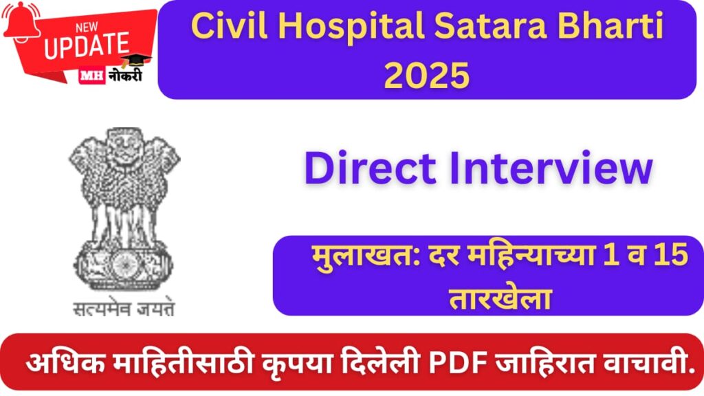 Civil Hospital Satara Bharti 2025 : Premium Healthcare Jobs Satara 2025 संपूर्ण माहिती : Civil Hospital Satara अंतर्गत Premium Healthcare …