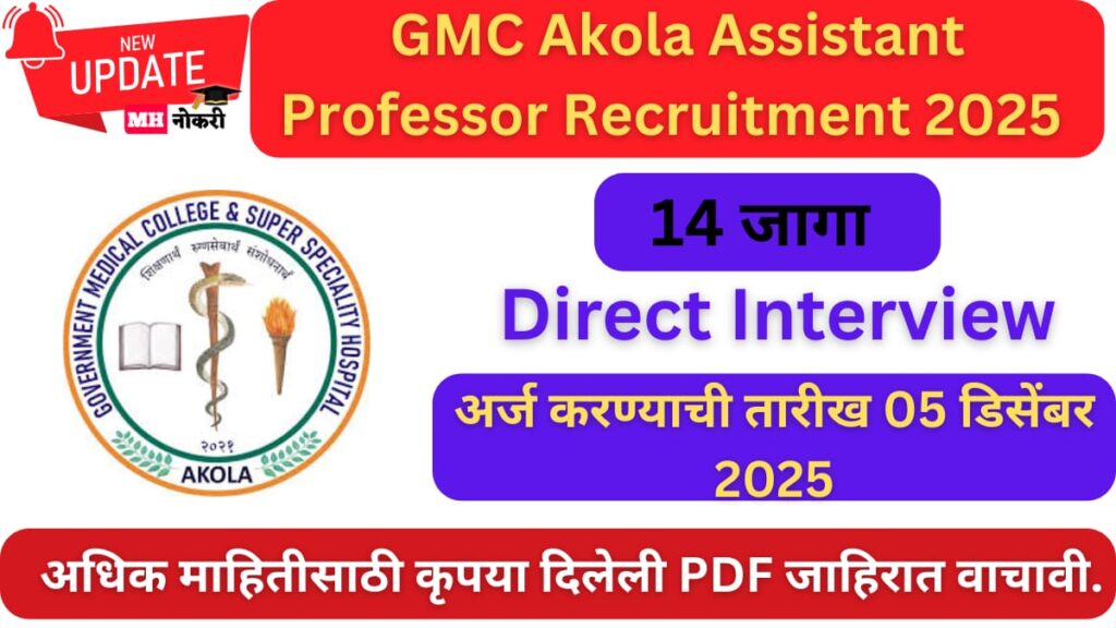 Premium GMC Akola Assistant Professor Recruitment 2025 – 14 Excellent Vacancies ही एक Golden Opportunity आहे ज्यामध्ये Government Medical College …