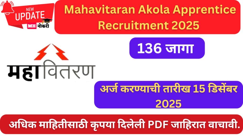 Premium Mahavitaran Akola Apprentice Recruitment 2025 – 136 Excellent Vacancies अंतर्गत महाराष्ट्र राज्य विद्युत वितरण कंपनी लिमिटेड (Mahavitaran / MSEDCL) …