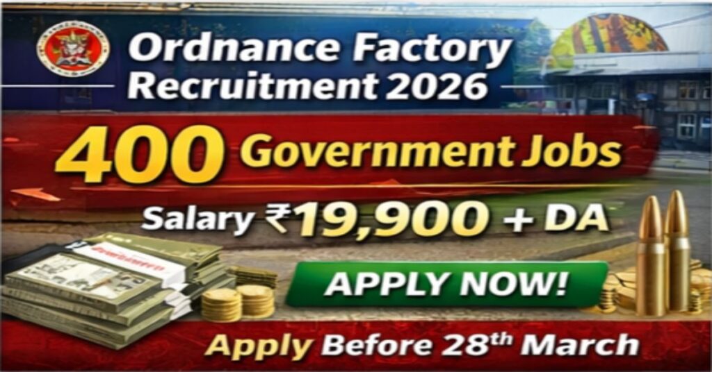 Ordnance Factory Bhandara Recruitment 2026: 400 DBW Vacancies | Salary ₹19,900 + DA | Apply Before 28 March