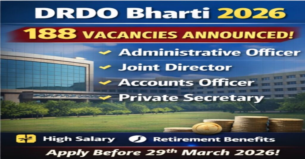 DRDO Accounts Officer Recruitment 2026 announced for 188 posts including Administrative Officer and Accounts Officer. Check salary, eligibility and apply …