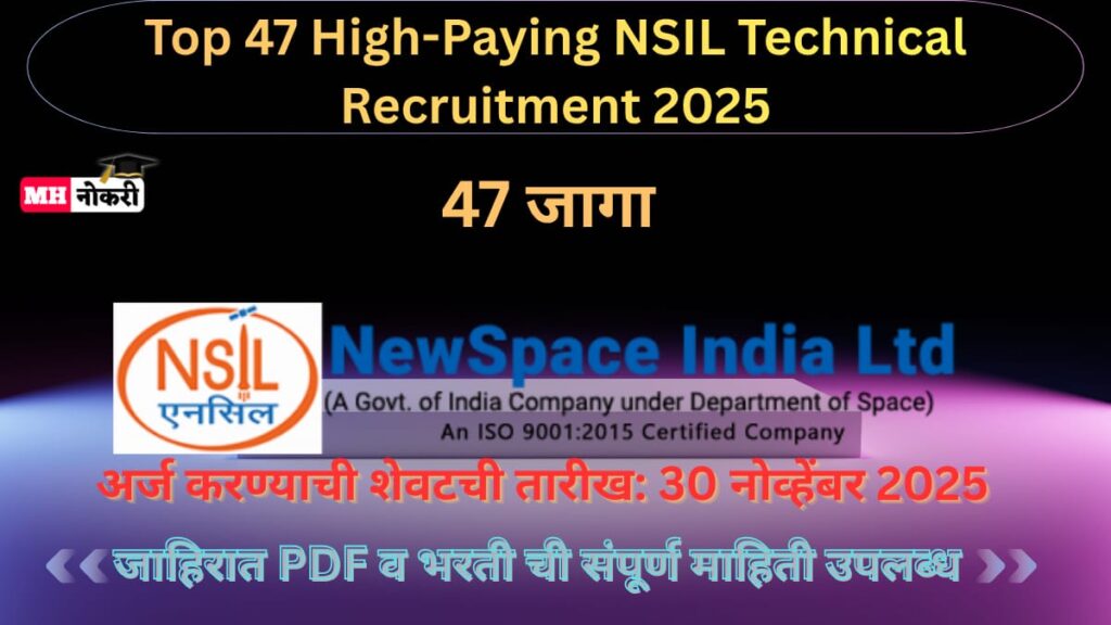 Top 47 High-Paying NSIL Technical Recruitment 2025 | Premium Govt Job Update NewSpace India Limited (NSIL) ने 2025 साठी 47 …