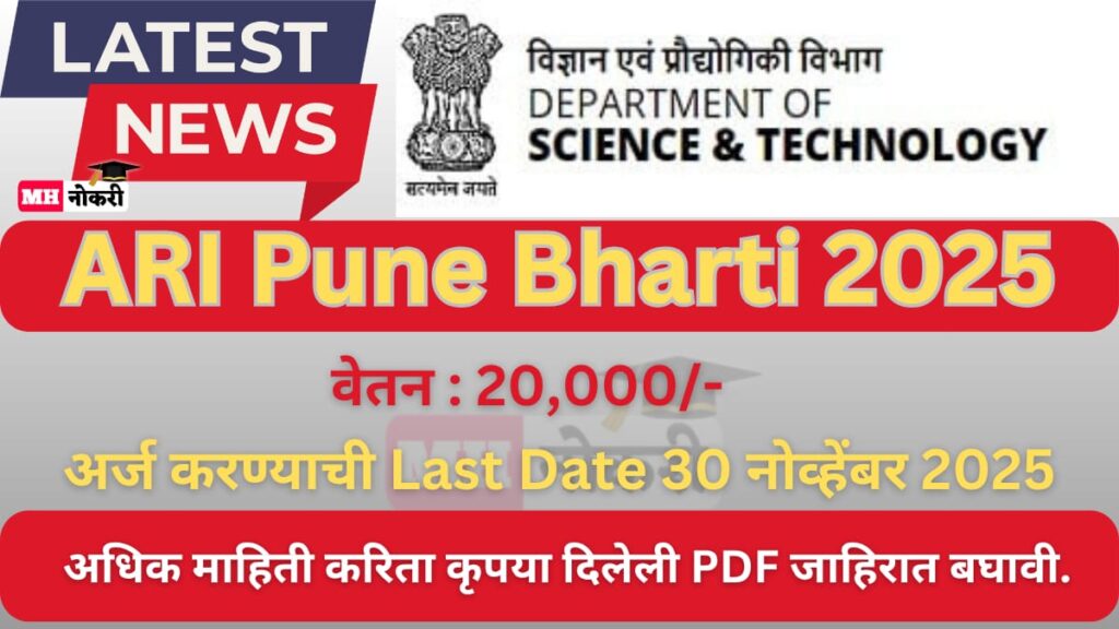 ARI Pune Bharti 2025 Exclusive Career Boost (Premium Job Update) ARI Pune Bharti 2025 Exclusive Career Boost ही महाराष्ट्रातील विद्यार्थ्यांसाठी …