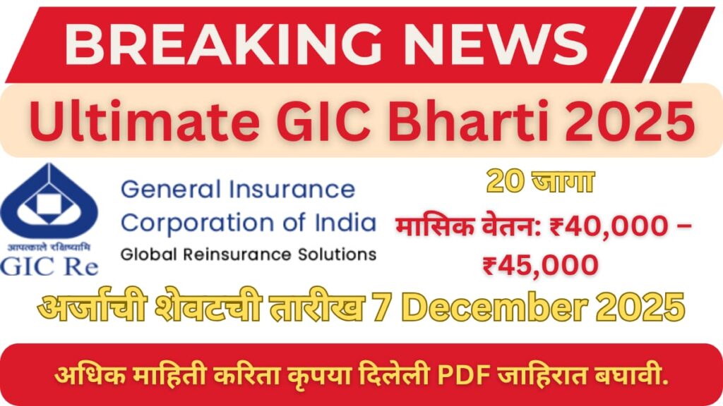 Ultimate GIC Bharti 2025 – 20 Premium Actuarial Apprentice Posts (High-Value Salary & Secure Career) GIC Bharti 2025 अंतर्गत भारतीय …