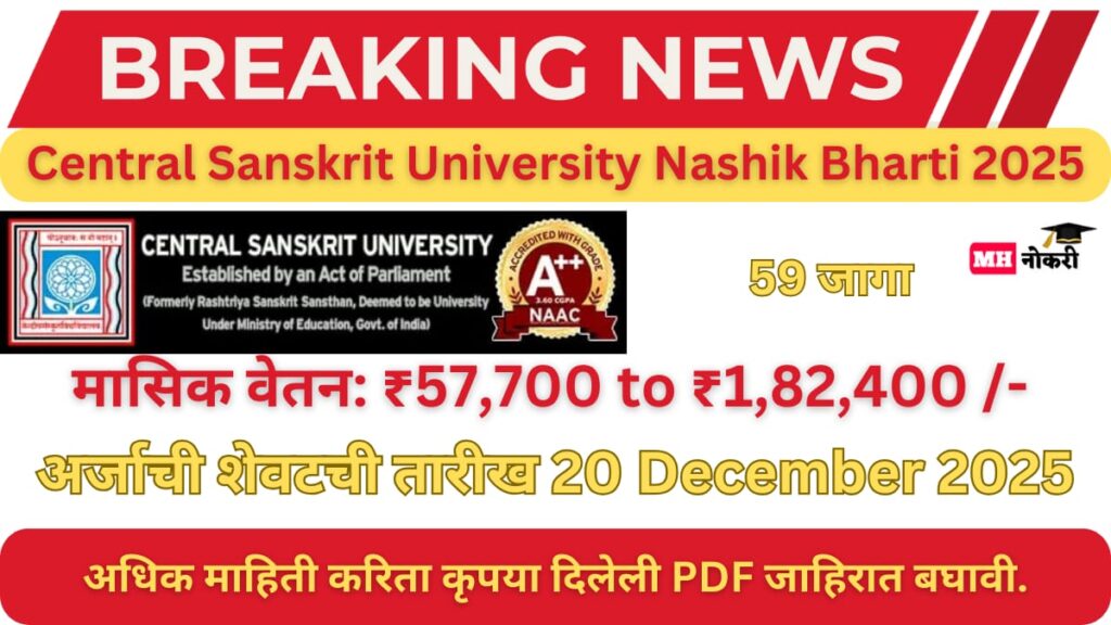 7 Powerful Updates: Central Sanskrit University Nashik Bharti 2025 (High Salary | Apply Online) Central Sanskrit University Nashik Bharti 2025 …