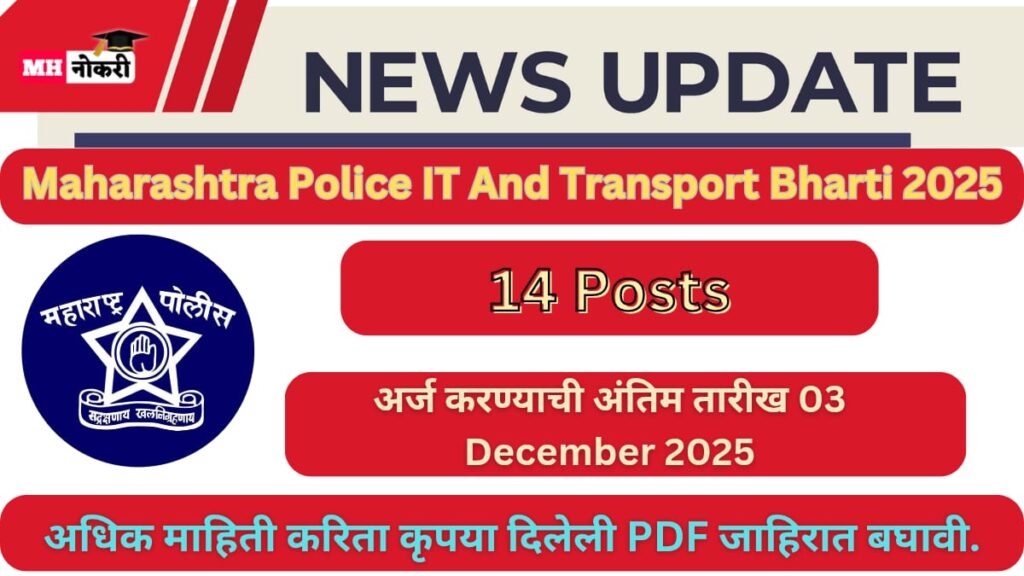 Maharashtra Police IT And Transport Bharti 2025: Powerful Vacancy Update (14 Posts) Maharashtra Police IT And Transport Bharti 2025 अंतर्गत …