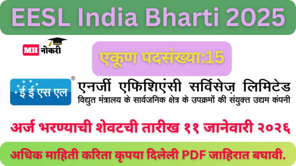 EESL India Bharti 2025 अंतर्गत Power Sector मध्ये करिअर शोधणाऱ्या उमेदवारांसाठी Secure, High Salary आणि Reputed PSU Job ची सुवर्णसंधी …