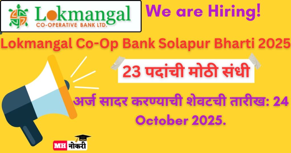 Lokmangal Co-Op Bank Solapur Bharti 2025 | 23 पदांची मोठी संधी (Apply Now)23 पदांसाठी भरती सुरू! वसुली अधिकारी, शाखा व्यवस्थापक, …