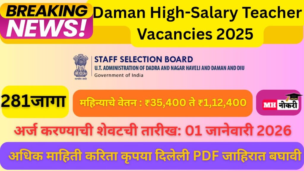 Daman High-Salary Teacher Vacancies 2025 – 281 Premium Teaching Jobs (Apply Online) Daman High-Salary Teacher Vacancies 2025 अंतर्गत Staff Selection …