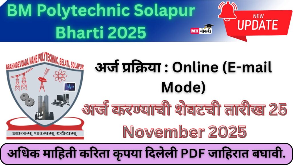 BM Polytechnic Solapur Bharti 2025: Powerful Career Boost Notification BM Polytechnic Solapur Bharti 2025 (Brahmdevdada Mane Polytechnic Solapur) ने Lecturer, …