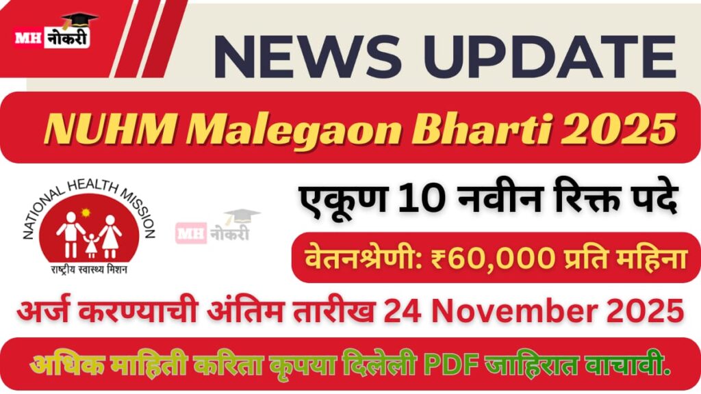 NUHM Malegaon Bharti 2025: Powerful New Medical Officer Vacancy Notification NUHM Malegaon Bharti 2025 अंतर्गत National Urban Health Mission, Malegaon …