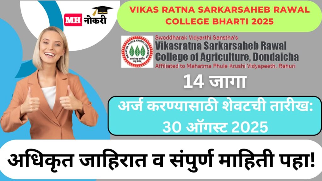 Vikas Ratna Sarkarsaheb Rawal College Bharti 2025 धुळे जिल्ह्यातील Vikas Ratna Sarkarsaheb Rawal College of Agriculture, Dondaicha यांनी 2025 साठी …